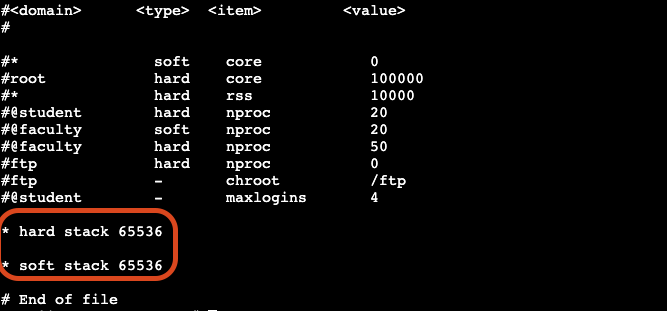 On Linux, you can increase the limit by adding the following two lines at the very end of /etc/security/limits.conf, then rebooting the system: